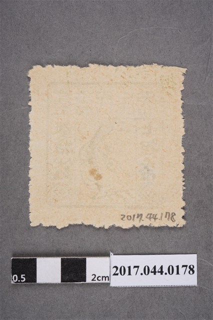 3.臺灣民主國郵票又稱「獨虎票」,部分西方文獻指為「黑旗票」。據捐贈者李明亮指出,臺灣民主國郵票是1895年8月任職安平海關的英國人麥嘉林(C. A. McCallum)所創,交由安平海關經營,最初發行的動機是為了替黑旗軍劉永福籌備軍餉,先後發行了五種版次(包括試用版),每版發行一套三枚,面值30錢、50錢、100錢。試用版、第一版至第三版可能的發行時間約為1895年8月中旬至9月初期間,使用至同年10月19日,第四版則未被使用過。郵票印製方式是以手工逐一蓋印,最後再以另一版模印上面值。 (蔡宜璇撰寫)
