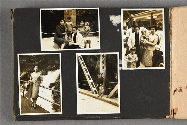 林桂興長女林秀菊與小孩於花蓮太魯閣鐵橋上合影。