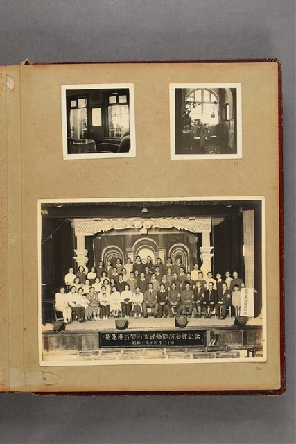 昭和18年(1943)成立「花蓮港音樂研究會」,會址就設在林桂興自宅內,此為東台灣第一個西洋音樂研究會,創辦人為林桂興,郭子究為會內指導講師。而在演出當時為了避免受到日本官方的關注,在演出時的樂隊名稱都改為「花蓮港市奉公樂團」來避禍,如照片右邊布條「藝能奉公演奏順序」。 參考資料:葉柏強,2014。台灣棒球史第一人-林桂興與他的時代,頁39-42。花蓮:花蓮縣文化局。