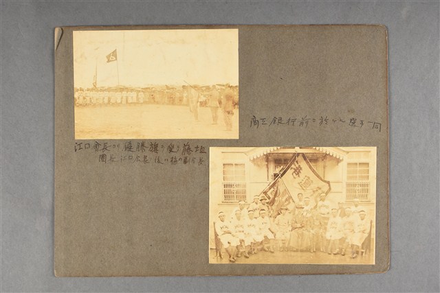 手持優勝旗者為花蓮港廳長江口良三郎,後面站立者是梅野清太,前面隊伍為商工隊,隊伍後面一個大旗幟上的符號,為朝日組的商標。 參考資料:葉柏強,2014。台灣棒球史第一人-林桂興與他的時代,頁27。花蓮:花蓮縣文化局。