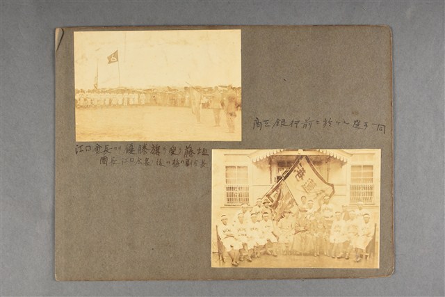 這是商工團成員在台灣商工銀行花蓮港支店前的合照,中央雙手叉腰者為梅野清太,他是商工銀行監事,左邊是古賀朝一郎。球員在花蓮港大旗幟合照,球衣繡有"SHOKO"