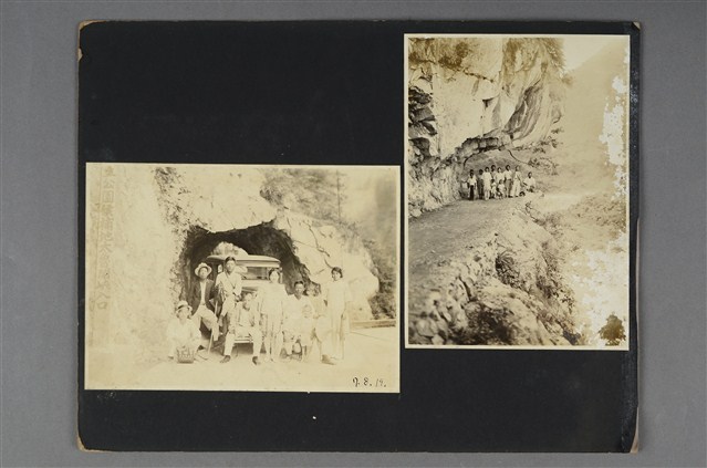 林桂興(靠近峽谷坐立者)及其家人親戚和友人出遊至太魯閣。