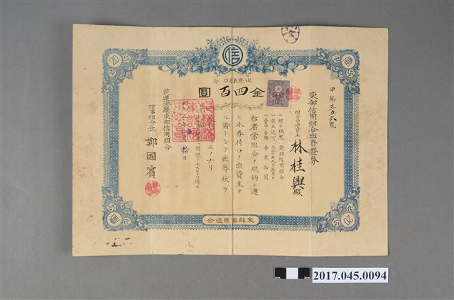 2017.045.0094 東部信用組合出資證券甲第三五六號