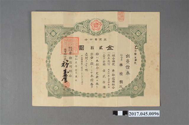 2017.045.0096 東部信用組合出資證券乙第壹五参號