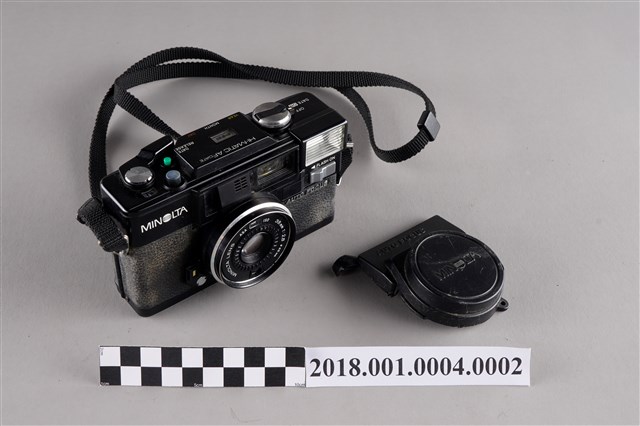 2. 據捐贈者描述,本件為個人第2臺相機,也是第1臺傻瓜相機,約於民國60年代購買於嘉義,時任臺鐵嘉義段工務主任,原本使用Konica Auto S1.6相機,因為覺得相機有點笨重,出門攜帶不便,便淘汰此款購買了輕巧的Minolta自動相機。