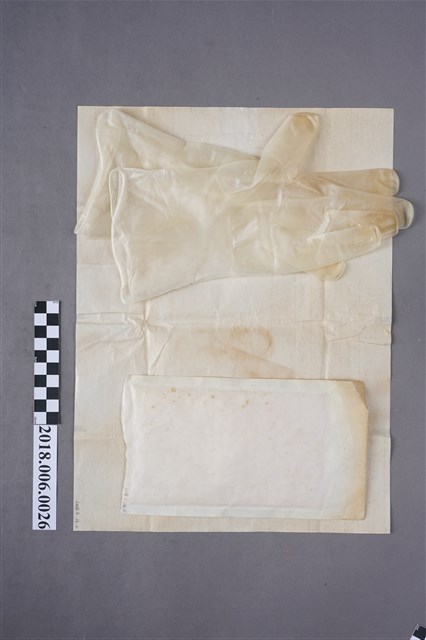 本文物為消毒手套,主要是探查子宮口是否全開及接生時使用。
