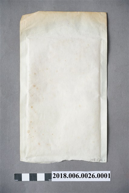 本文物為消毒手套外包裝,其有白色底、粉紅色字的外包裝,寫有英文及日文說明,尺寸7,一端有被撕開。