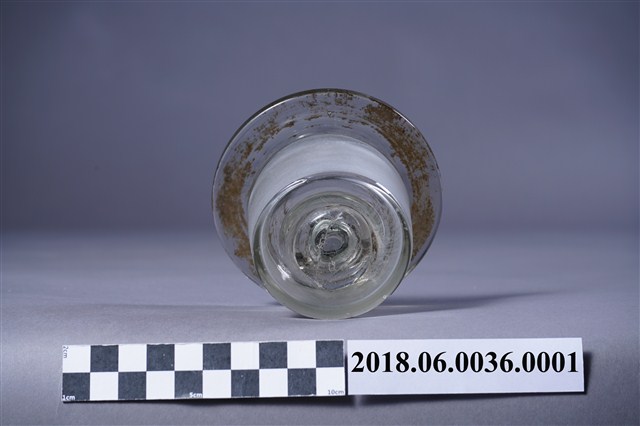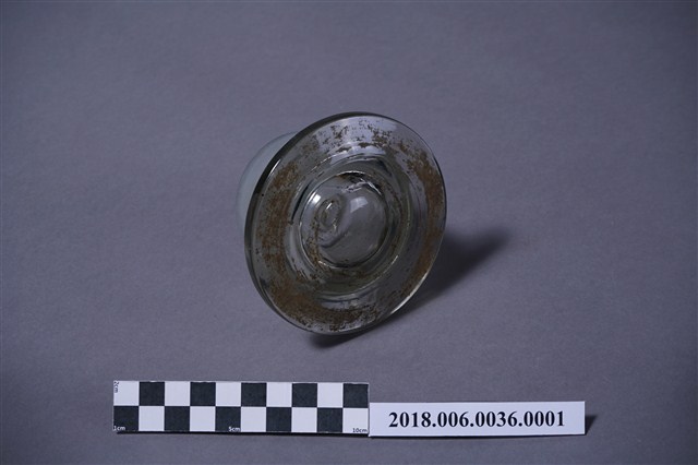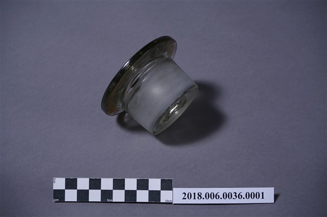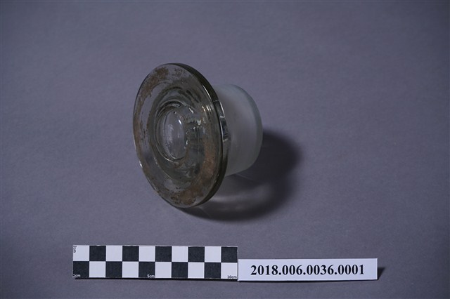 寬口玻璃瓶蓋的表面有多處的黑點汙漬與刮痕,其中瓶蓋內部的中心,也有玻璃破損的現象。