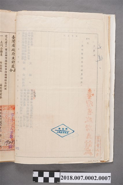 本件為中華民國62年(1973年)臺灣省政府主計處任免人員通知書給文鍵,文號62.1.23主人字第06472號,載明兩筆人事調派案,其中文鍵由臺中市立雙十國民中學主計室主任調派代至臺灣省立臺中高級家事商業職業學校主計室主任,原臺中高級家事商業職業學校主計室主任邢作合,則調派代至臺中市立雙十國民中學主計室主任。物件由捐贈者與他份文件集結成冊收藏,文件上蓋有關防大印、銓敘部辦理退休審核等印鑑,以及左上方有鉛筆編號註記7。