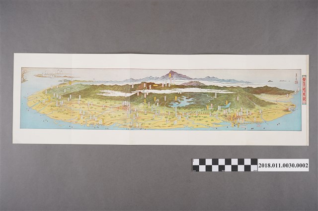 2018.011.0030 金子常光繪〈臺南州大觀〉鳥瞰圖及封套