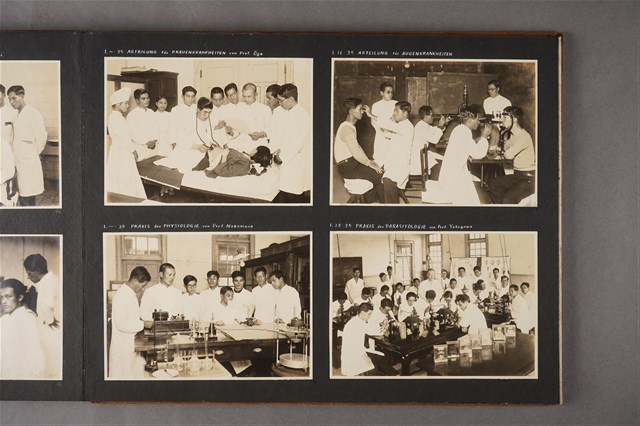 推測此為臺北醫學專門學校之相簿。該校為1922年創設,1936年4月1日臺北帝國大學增設醫學部,並合併臺北醫學專門學校成為臺北帝國大學附屬醫學專門部,從其中於1935年1月14日有kubo(即久保孝四郎)擔任教授,可知應即為臺北醫學專門學校之照片,不排除此屆畢業生畢業時為臺北帝國大學附屬醫學專門部身份,此照片有108張照片,內有醫學專門學校學生上課時之照片,如解剖、看診、軍訓課等,亦有至臺北植物園留影、吃鋤焼(すきやき),吃鋤焼的人合照,都是日人看來,此相簿應為日本人所有,內文說明全部使用德文,也顯示當時醫學專門學校學生之重要外語為德文。
