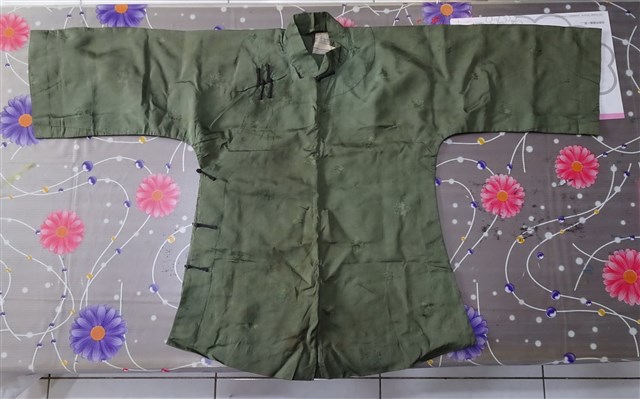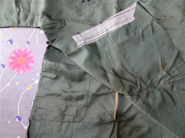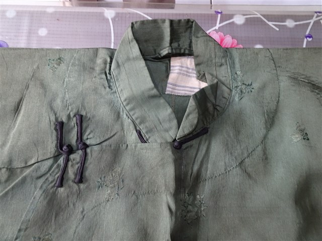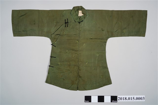 2018.015.0003 淺墨綠綢地花葉紋緹花大襟女衫