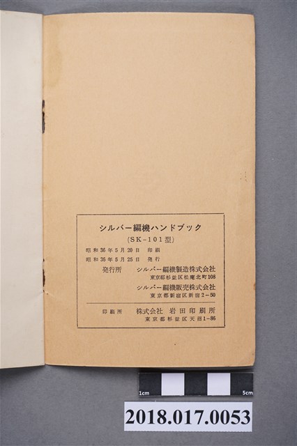 2018.017.0053 銀箭牌編織機SK-101型使用說明書