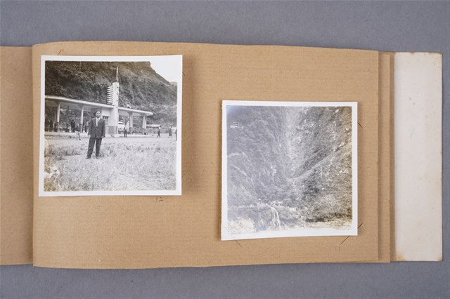 王木春站在花蓮天祥車站前留影。王木春為林坤佐大姐夫,時任嘉南農田水利會頂六工作站站長。