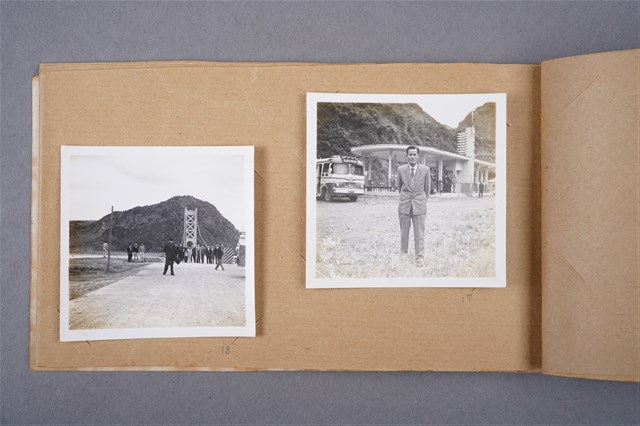 一群人站在某橋頭前留影。照片的大橋推測為花東一帶的橋樑,為林坤佐等人旅遊花蓮、臺東時觀光的一個景點。