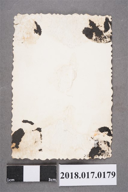 林何賽秋的個人沙龍照,由忠義攝影。照片右下方有「TAIWAN KAGI、忠義、PHOTO STUDIO」等字。