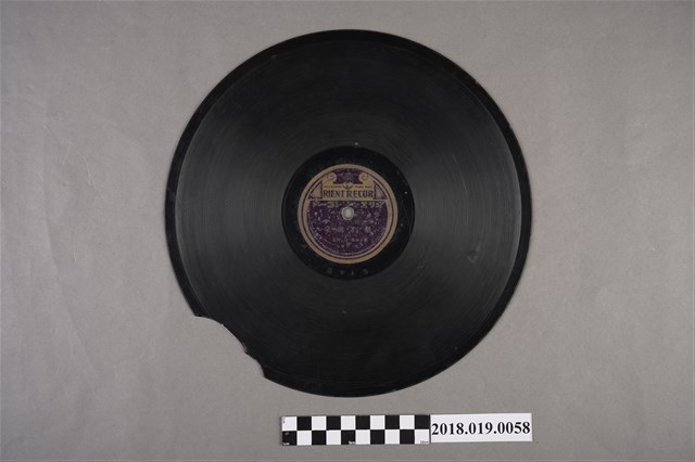 李中興、徐氏阿扁演唱錄音。唱盤邊緣破損、圓標布滿白色斑點。兩人對唱的四句連褒歌。1套共2張,本片為1、2兩段。