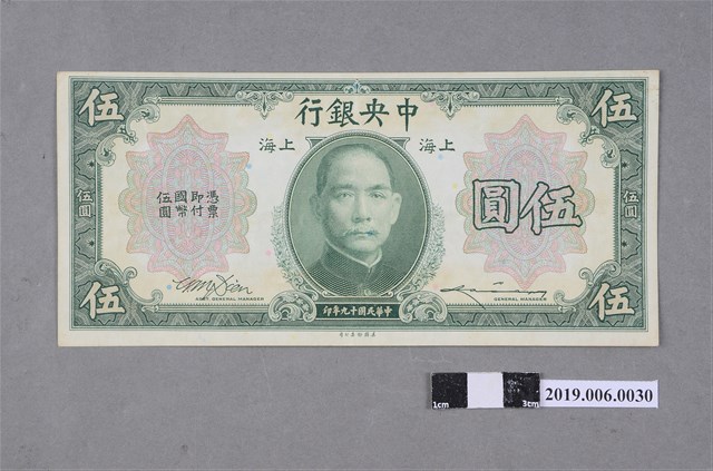 2019.006.0030 中央銀行發行伍圓紙鈔