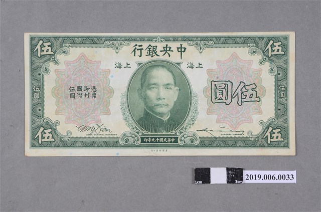 2019.006.0033 中央銀行發行伍圓紙鈔