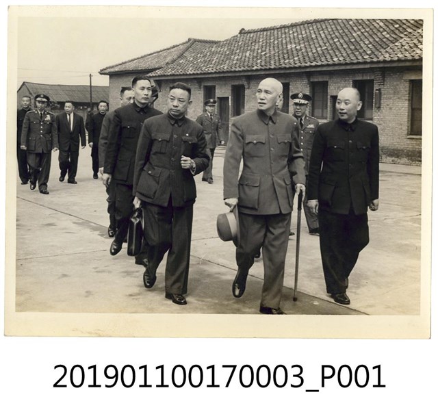 本文物為1960年蔣介石總統巡視軍中照片之2,照片從左數來第2位為當時的總統蔣介石,第3位為當時的國防部情報局局長毛人鳳,隊伍後方則是蔣經國等人。