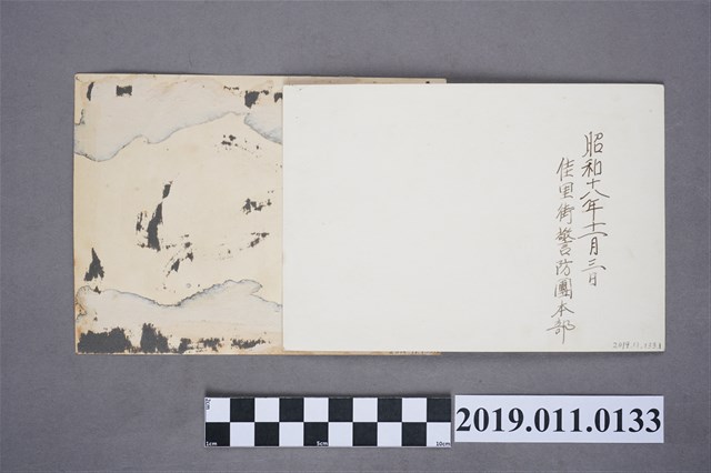 本文物為昭和時期的警防團成員合照,為黑白照片,共兩件,分別為「佳里街警防團本部」、「台中警防團第二回 日南方面水害現地救護派遣隊紀念」。臺灣的警防團於昭和18年(1943)敕令194號〈臺灣警防團令〉,將原有的防衛團、消防組、壯丁團整併為警防團,並由內務轉制警務系統管轄,其正副團長多由在臺日人或臺籍地方人士所領導,其任務為防空、消防、救護等工作。