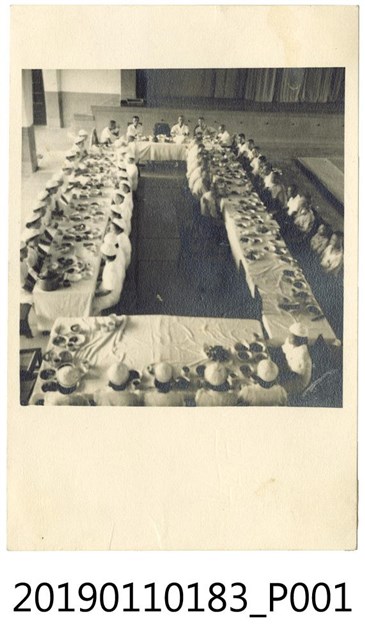 本文物的年代為日治時期,為一黑白相片,其保存狀況良好。相片中,餐桌圍成長方形,桌子兩側皆有人坐,桌上亦擺滿食物。相片左側及下方為穿著護士服的女性,右側及上方則為男性,其中上方中央處有空缺。