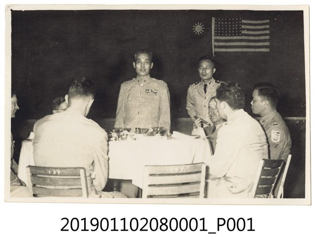 本文物為戰後初期的相片,為黑白相片,保存狀況良好。相片中可見一群人圍著圓桌,皆穿著軍服,並可見美國及臺灣兩方人。相片右後方的牆上掛有美國國旗及青天白日的國徽,其中美國國旗上的星星數量為48顆。