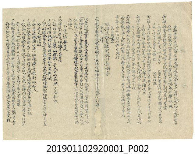 此為民國40年(1951)8月5日內埔鄉公所發出,至各機關團體村長的戒嚴時期取締流氓辦法,辦法共分為11條,另有實施計畫綱要與宣傳要點。