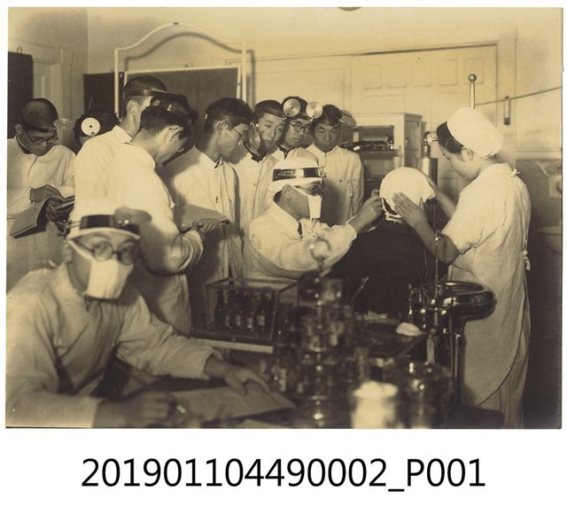 本文物為臺北帝國大學醫學部(現今臺灣大學醫學院)學生實習之情形照片。1928年時臺北帝國大學成立之初並未設醫學部,1936年臺北醫學專門學校併入臺北帝國大學後,才正式創設醫學部。