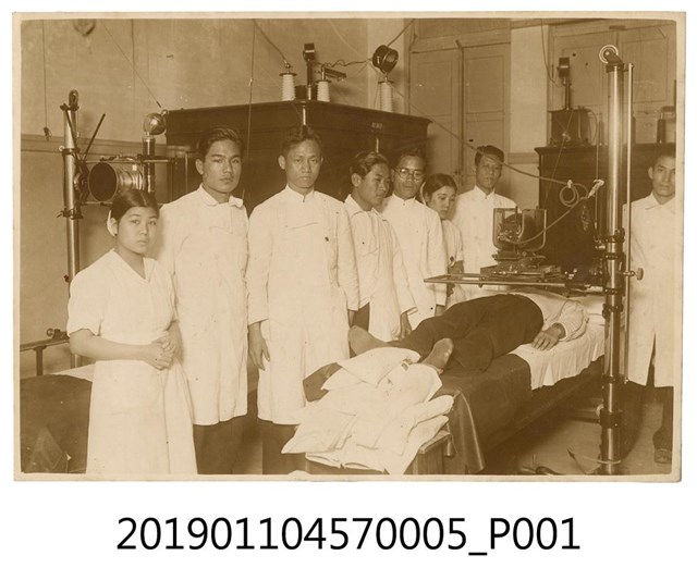本文物為臺北帝國大學醫學部教授學生實習上課照片。1928年時臺北帝國大學成立之初並未設醫學部,1936年臺北醫學專門學校併入臺北帝國大學後,才正式創設醫學部。