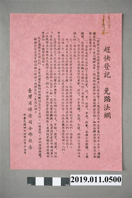 2019.011.0500 前在大陸被迫附匪份子登記辦法說明
