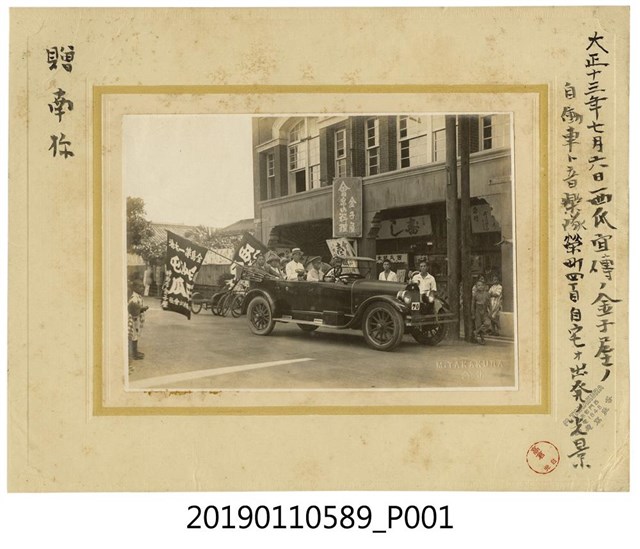 乘載樂隊準備出發作西瓜販賣宣傳廣告的豪華汽車