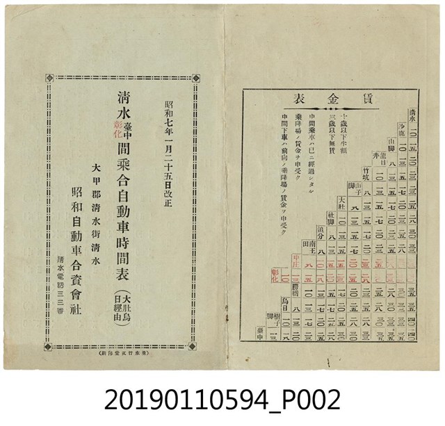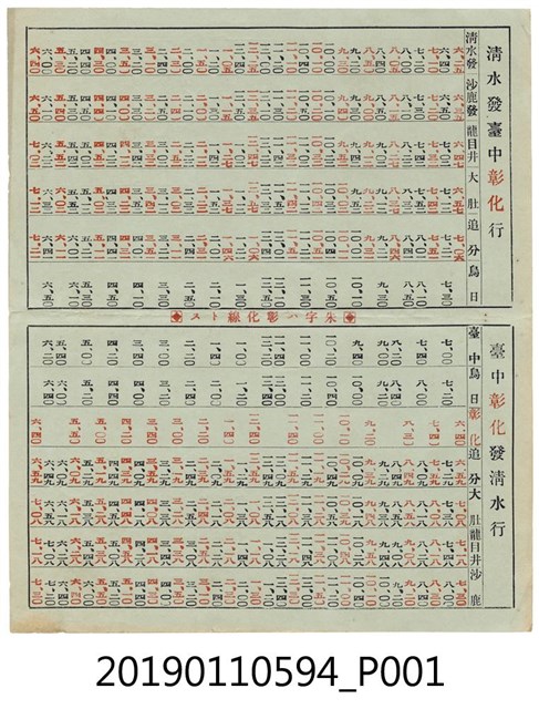 清水台中彰化間乘合自動車時間表