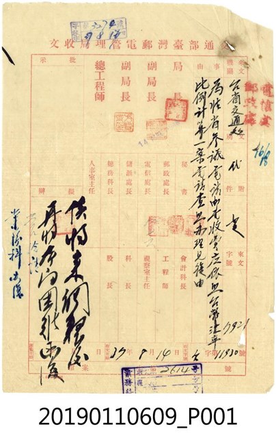 2019.011.0609 交通部台灣郵電管理局收文—建議郵電收費應依照台幣匯率比例計算案公文