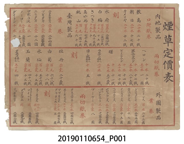 煙草定價表