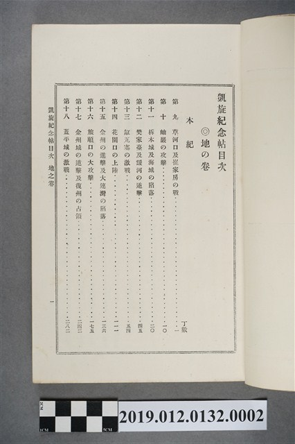 此為明治28年(1895年)所發行的凱旋紀念帖,此卷為地之卷,記錄了進攻旅順、花園口戰役、攻陷大連等戰役,內有多幅相片與詩文。