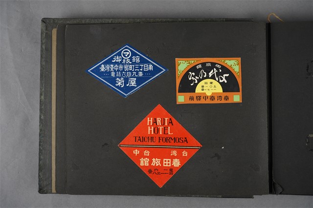 本文物年代為日治時期,為臺中地區一處旅館的廣告。文物為藍色菱形紙張,上方印有「御旅館(マ)」、「臺中市寶町三丁目……菊屋」等字。