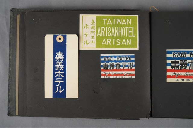 本文物年代為日治時期,為嘉義一處旅館吊牌。文物為長方形紙張,中央上方處有圓形孔洞。紙張中央為藍色,左右為白色,其中藍色部分印有「嘉義ホテル」等字。