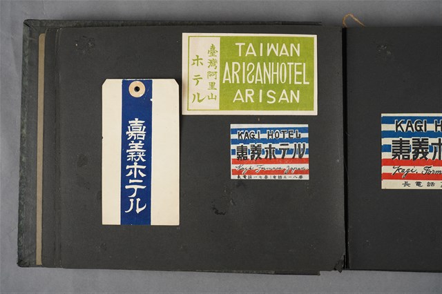 本文物年代為日治時期,為嘉義地區一處旅館的廣告。文物為藍紅相間的紙張,紙張保存良好。文物印有「KAGI HOTEL」、「嘉義ホテル」及英文草寫,其文字為「Kagi Formosa……」等字。紙張最下方為旅館電話號碼「三一八番」,長途電話為「一十七番」。