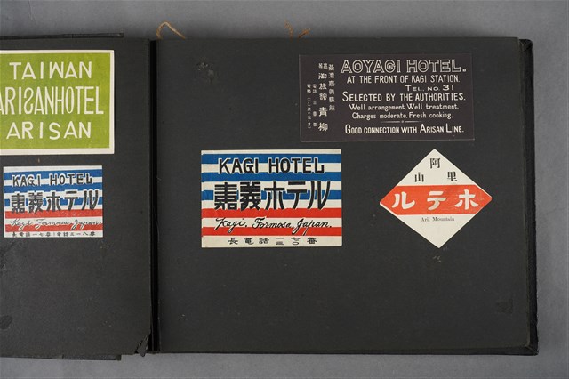 本文物為1930年代物品,為嘉義一處旅館廣告。文物為方形黑色紙張,上方字體為金色印刷。紙張印有「AOYAGI HOTEL……」、「Charges moderate……」、「GOOD CONNECTION WITH ARISAN LINE」及「臺灣嘉義驛前高等御旅館 青柳」等字。