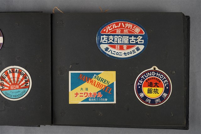 本文物年代為日治時期,為哈爾濱一處旅館的廣告。文物為橢圓形紙張,紙張左側顏色有些微掉漆。文物上印有「滿洲ハルピン」、「名古屋館支店」等字。