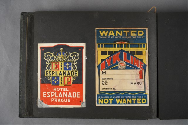 本文物為1930年代物品,為卡納德郵輪發行的行李貼紙。文物為方形,且泛黃嚴重。紙張上方印有「WANTED……」,其下排文字大意為「如行李需跨國託運,便撕掉此處」;中央印有船頭樣貌及「N.Y.K. LINE」等字;下方為乘客資料及「NOT WANTED」,其意思與上排文字相反。