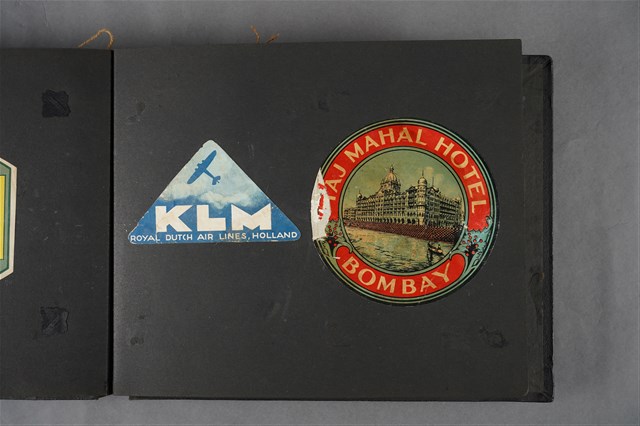 本文物為1930年代物品,為荷蘭皇家航空的廣告商標。商標為三角形,並黏貼於收藏冊中。商標圖案以藍色及白色為天空象徵,上方有一架飛機,圖案下方印有「KLM」、「ROYAL DUTCH AIR LINES,HOLLAND」。