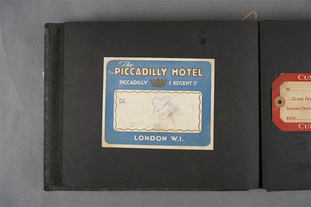 本文物為1930年代物品,為皮卡迪利飯店的紙卡。紙卡為白色邊框,藍色背景,上方印有「The PICCADILLY HOTEL……」等字。紙卡中央有空白處,可供人留言用。