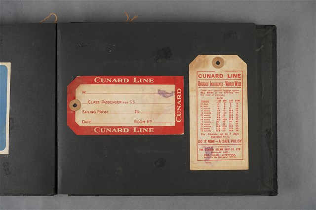 本文物為1930年代物品,為卡納德郵輪的行李吊牌。吊牌以紅色為邊框,並印有「CUNARD LINE」、「……CLASS PASSENGER……」、「SAILING FROM……」等字,吊牌右上方處可見紫色墨水印。
