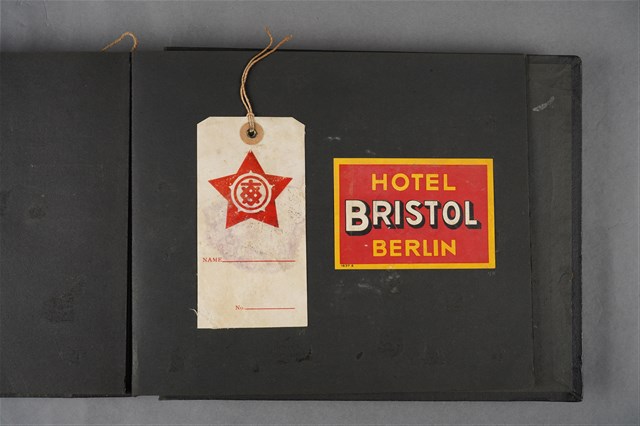 本文物為1930年代物品,為柏林一處旅館的廣告商標。文物的邊框為橘黃色,中央為紅色並印有「HOTEL BRISTOL BERLIN」。文物黏貼於黑色紙張上,紙張右側有紙張剝落痕跡。該旅館於1891年開幕,並於1944年遭到空襲而關閉。