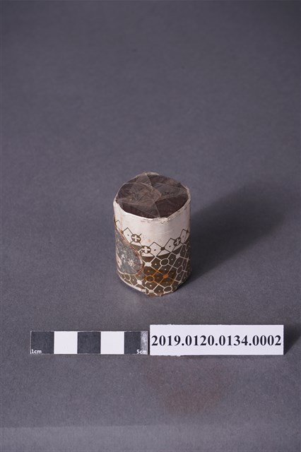 本文物為染料罐(鼠色),外觀花紋為黑色,可用於尼龍、絹、毛等。染料顏色為鼠色,鼠色在日文的意思是灰色,如字面上寫就像老鼠的顏色。罐外寫有家庭用染料,染料性質為酸性染料,酸性染料是含有酸性基團的水溶性染料,色澤鮮艷,對纖維素無著色效果。