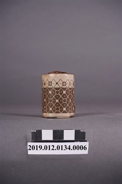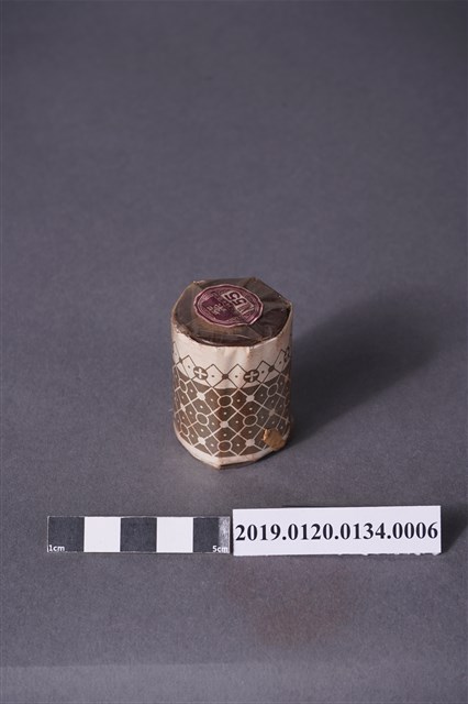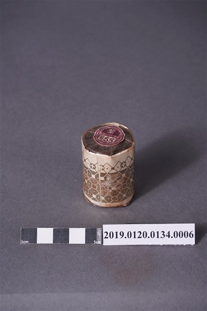 本文物為染料罐(紫色),外觀花紋為黑色,可用於尼龍、絹、毛等,罐頂有編號NO.55。染料顏色為紫色。罐外寫有家庭用染料,染料性質為酸性染料,酸性染料是含有酸性基團的水溶性染料,色澤鮮艷,對纖維素無著色效果。