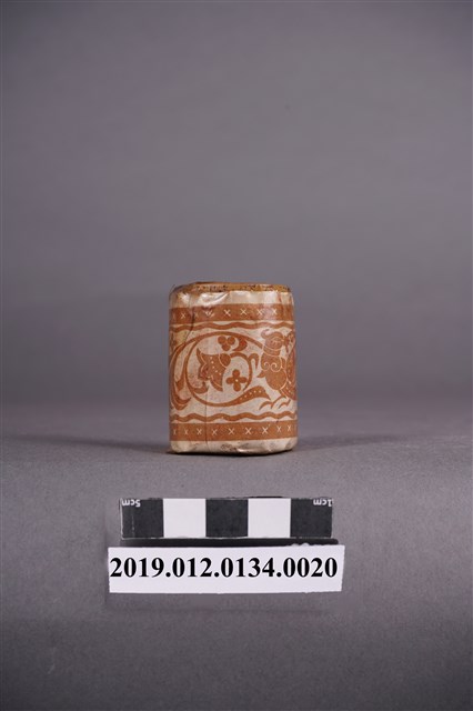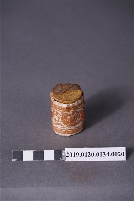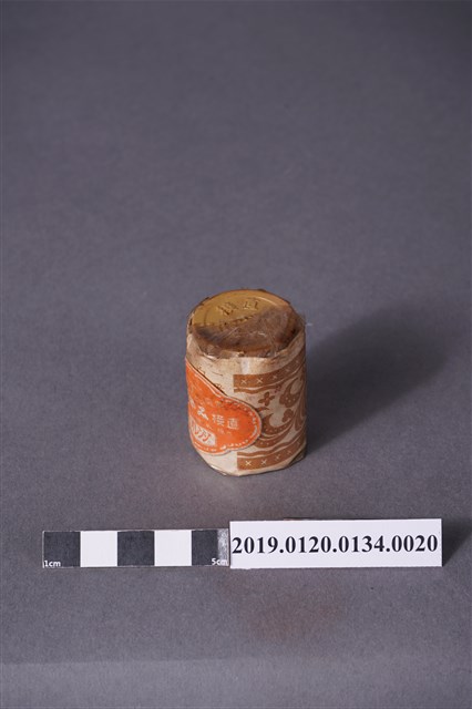 本文物是日治時期家庭使用染料罐,屬於直接みやこ染,みやこ染指得是可以在家庭使用的染料,該色號染料可直接用於木棉、麻、絲製品、人造絲。本文物外觀包裝大致完整,包裝有兩處商標,罐子上頭商標遺失,罐身商內容由右至左為「家庭染料,直接みやこ染,木棉、麻、絹、人絹染用,ォレンジ」。