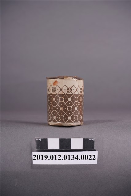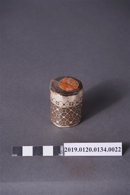 本文物是日治時期家庭使用染料罐,色號52號橘色,屬於酸性みやこ染,みやこ染指得是可以在家庭使用的染料,該色號染料可用於絲製品、毛、平織毛織品及尼龍。本文物外觀包裝大致完整,包裝有兩處商標,商標字跡模糊,罐子上頭商標為「ォレンジ,酸性絹、毛染用,NO.52」。罐身商內容由左至右為「家庭染料,酸性みやこ染,ナィロン、絹、毛用,ォレンジ」。